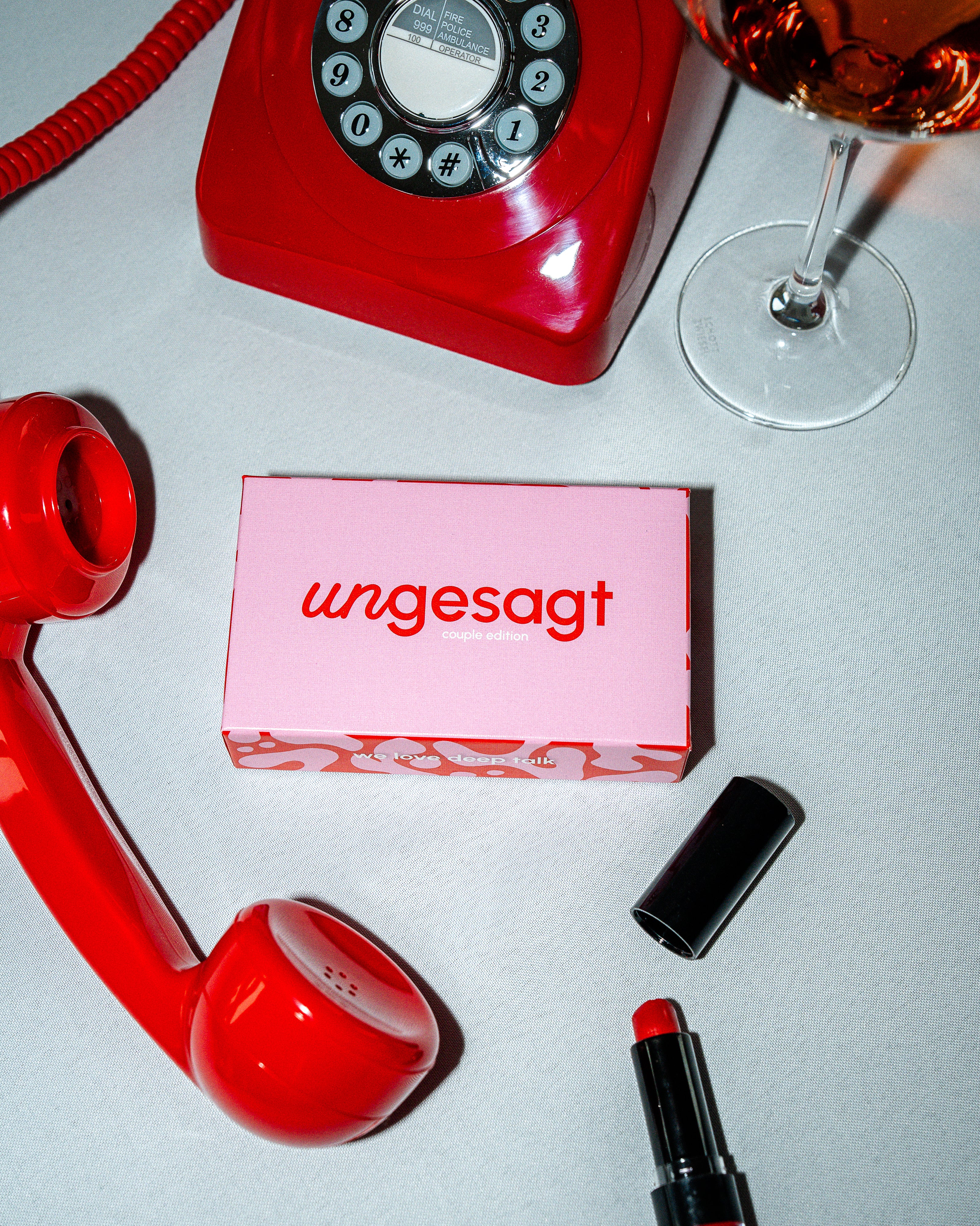 „UNGESAGT“ ist ein Kartenspiel für Paare (oder Freund*innen) – entwickelt, um ehrliche, tiefgründige Gespräche zu ermöglichen, Nähe zu schaffen und Themen anzusprechen, die im Alltag oft unausgesprochen bleiben. Es ist also kein klassisches Quiz oder reines Fun-Spiel, sondern ein Werkzeug für Kommunikation auf Augenhöhe.