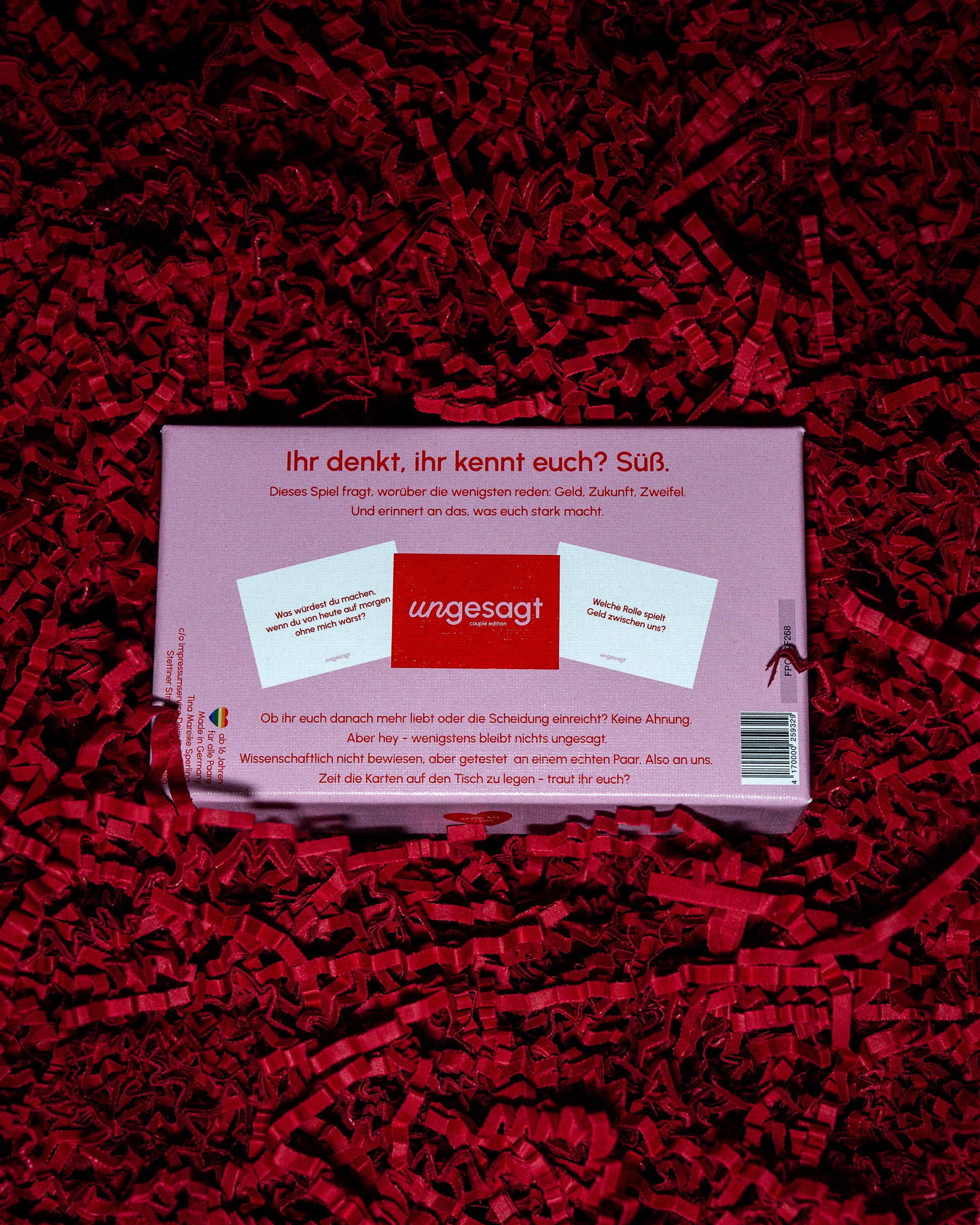 Ihr denkt, ihr kennt euch? Süß. Dieses Spiel fragt worüber die wenigsten reden: Geld, Zukunft, Zweifel. Und erinnert an das, was euch gemeinsam stark macht. Ob ihr euch danach mehr liebt oder direkt die Scheidung einreicht? Keine Ahnung. Aber hey - wenigstens bleibt nichts ungesagt. Wissenschaftlich nicht bewiesen, aber getestet an einem echten Paar. An uns. Zeit die Karten auf den Tisch zu legen. Traut ihr euch?